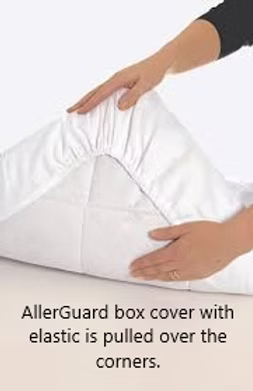 AllerGuard box cover with elastic is pulled over the corners.
